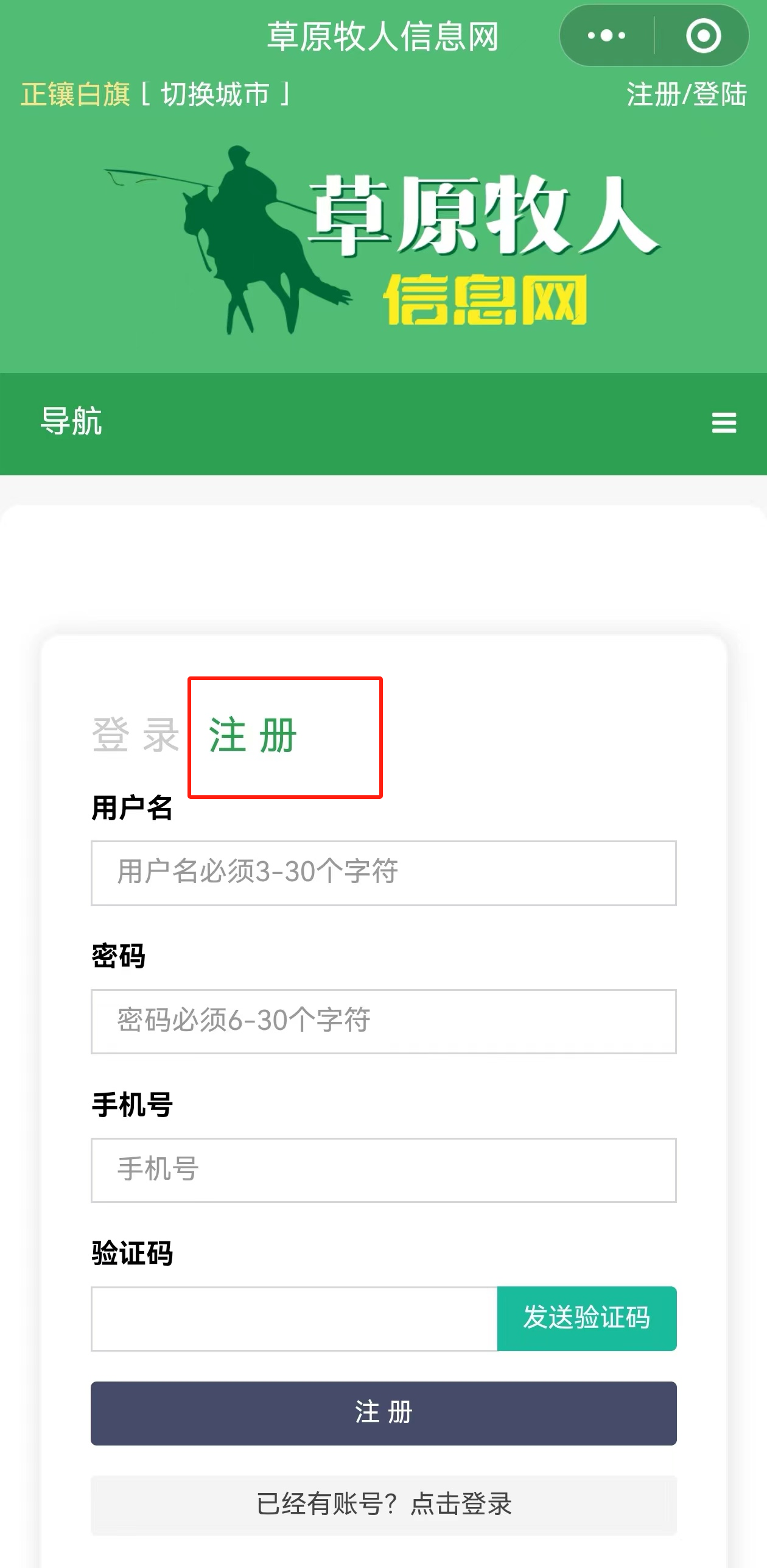 点击注册,用户名输入字母或数字、输入密码、手机号,发送验证码,最后注册即可。